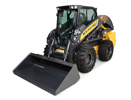 New Holland 300 Series loaders make comfort a priority to boost productivity on the job. More comfort starts with the cab itself, one of the widest in the industry, so it's easy to enter and exit. Full-covering trim absorbs noise, and the visibility panel on the cab roof gives you a clear view in all directions, even to the raised bucket or attachments. The fully sealed and pressurized cab minimizes dust and exhaust infiltration. Seat choices include the optional suspension seat or the heated, composite air-ride seat for maximum support and ultimate comfort. An optional, factory-installed lap bar is offered on all 300 Series models. All loader models also feature an optional 8-inch LCD display with integrated rear camera, Bluetooth radio (satellite-radio ready) and a USB port.